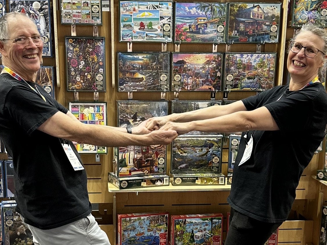 Monica and Rae Marlatt are puzzle influencers and community builders behind the popular Instagram account @puzzledabouteverything. With over 16,000 followers and a passion for jigsaw puzzles, this retired duo brings a fun and welcoming enrichment activity to life on cruise ships.